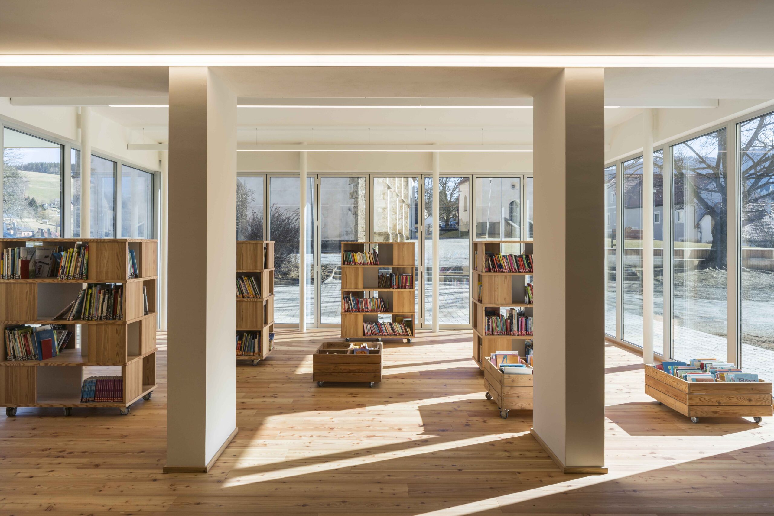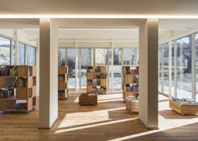 Die denkmalgeschützte Volksschule wurde vollkommen revitalisiert und mit deinem Dachgeschoßausbau sowie einem Bibliotheksanbau erweitert.